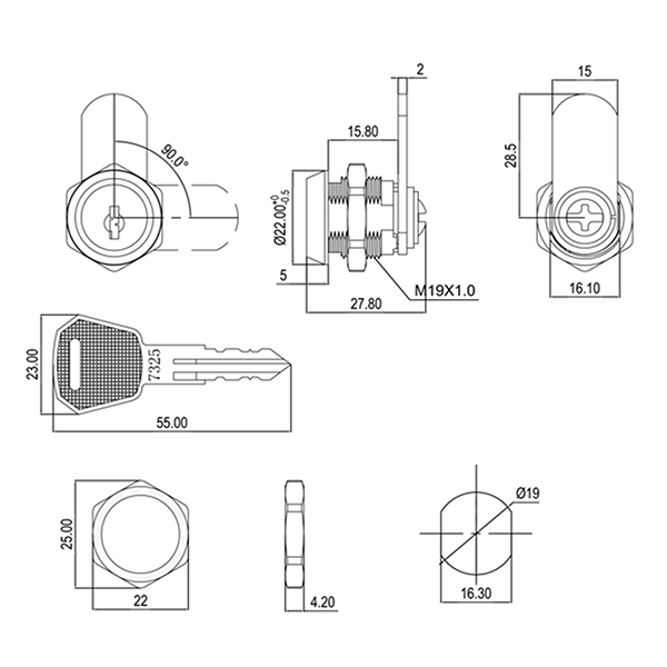 One of the key features of the JK510 cam lock latch is its compact size and precise 19mm hole diameter requirement. This makes it an ideal choice for applications where space is limited, yet a secure locking mechanism is essential. The cam latch mechanism ensures a tight and secure closure, providing reliable protection against unauthorized access.