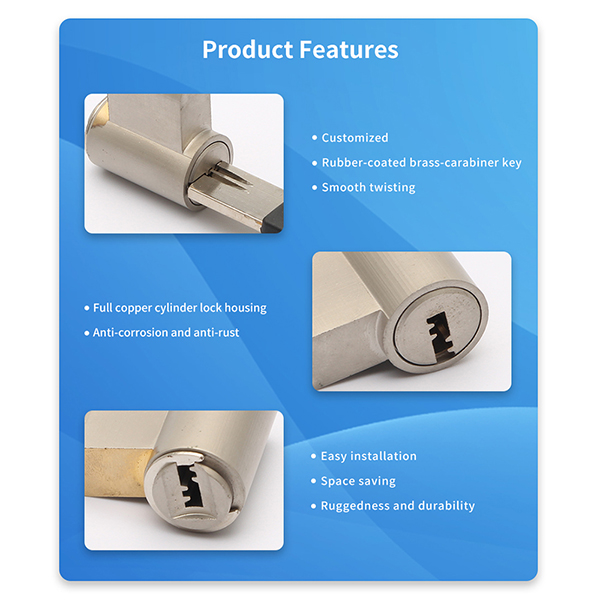 The JK555 cam lock cylinder operates with a brass key, a material known for its strength and resistance to wear. Brass keys are less likely to bend or break compared to keys made from softer materials, ensuring that they can withstand the test of time and frequent use. The brass key also provides a high level of security, as it is more difficult to duplicate or pick compared to traditional flat keys. This enhanced security feature is crucial in industrial settings where access control is paramount, and the risk of unauthorized access must be minimized.