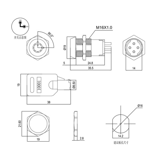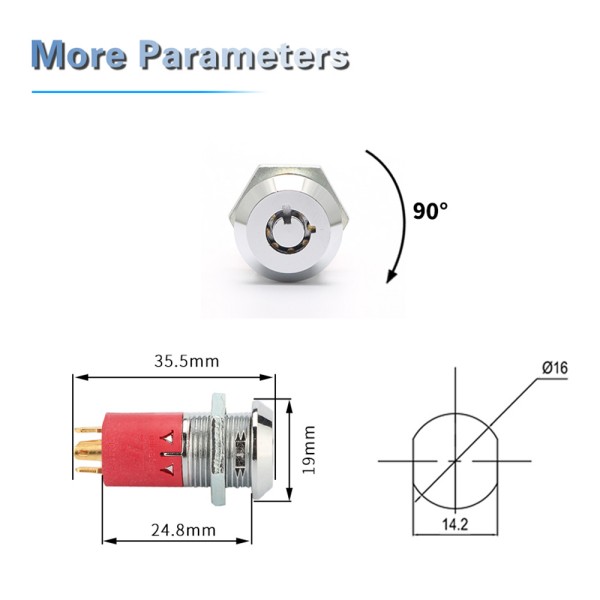 With an installation opening size of 16mm, the JK107 On/Off Power Key Lock Switch is designed for easy and precise installation. This standard size allows for seamless integration into a variety of devices, including Gate Control Systems, Security Systems, and Electric Forklifts, without the need for extensive modifications.
