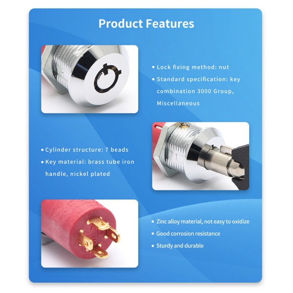 Crafted from high-quality zinc alloy, the JK107 On/Off Power Key Lock Switch is built to withstand the demanding conditions of industrial and security environments. This material choice ensures that the switch remains durable and corrosion-resistant, providing long-term reliability and performance.
