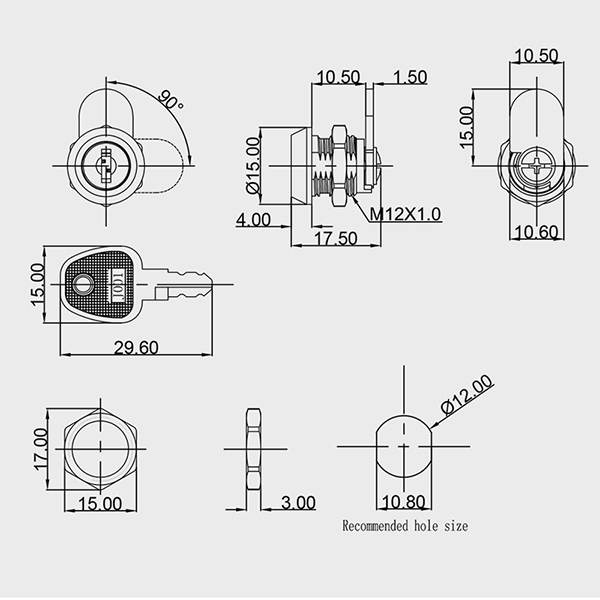 Installing the JK313 cam lock is straightforward. It requires a 12mm hole to be drilled into the door or panel where the lock will be placed. The lock body is then inserted into the hole, and the cam is attached to the exterior. This design allows for easy alignment and secure fastening