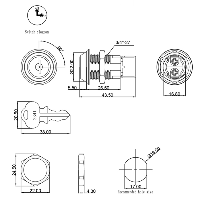 The JK201 Key Lock Switch is a precision-engineered product that offers a secure and straightforward method of controlling the power flow to essential devices. This switch is designed with two distinct positions, allowing for clear and precise control over the power state of the connected equipment. Its two terminal angles provide flexibility in wiring, making it easy to integrate into various electrical systems.