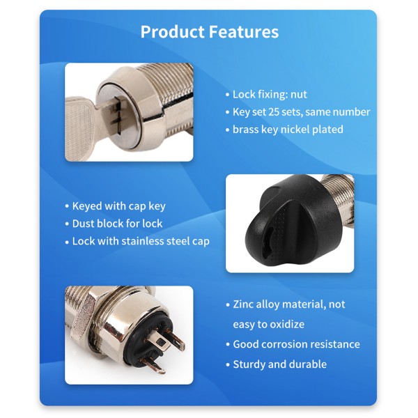 Versatile Applications: The JK207 is designed to be compatible with a variety of devices, making it a versatile solution for different industries. For Arcade Game Machines, it ensures that only authorized personnel can start or reset the games, maintaining the integrity of the gaming experience and preventing unauthorized access. In the medical field, it safeguards sensitive equipment, protecting patient data and ensuring that medical procedures are conducted under controlled conditions. For Electric Forklifts, it provides a secure ignition system, preventing unauthorized use and enhancing workplace safety.