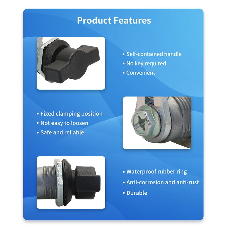 In the security field, the quarter turn lock has become an essential tool for securing critical equipment and ensuring operational integrity. Our latest model, the JK608, is designed to meet the diverse needs of modern industries with its robust construction and reliable performance. Crafted from high-quality zinc alloy, the JK608 combines durability with versatility, making it an ideal choice for applications such as power distribution cabinets, monitoring equipment boxes, and electric meter boxes.