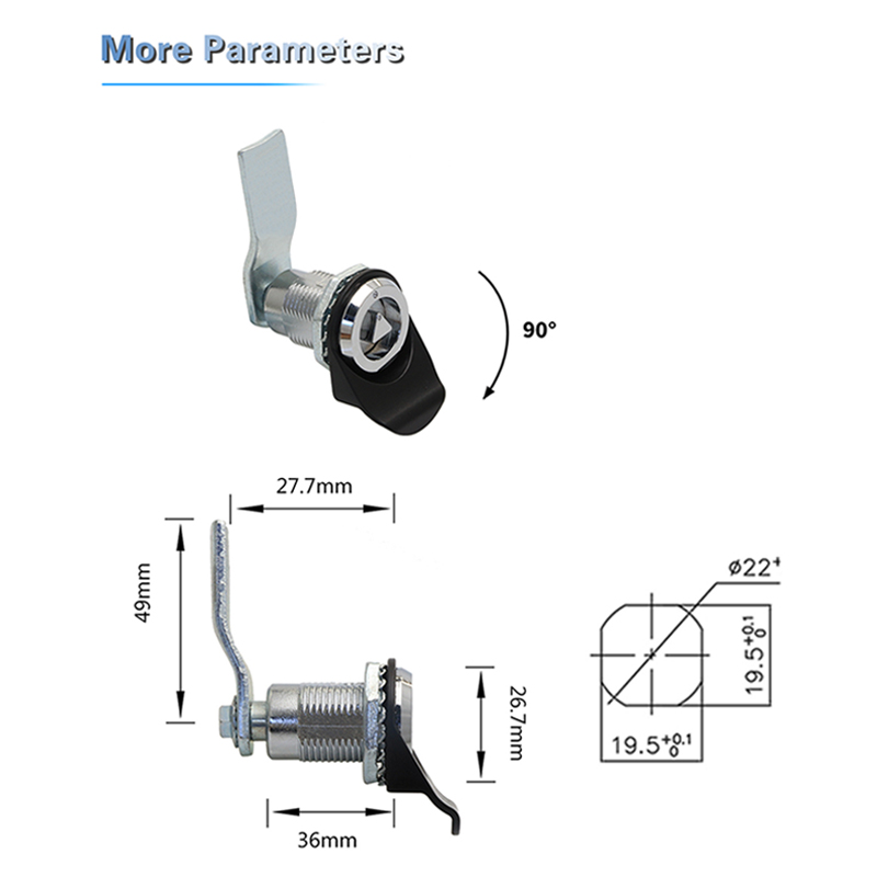 The JK619 quarter turn latch is engineered to provide robust security and ease of use. Its zinc alloy construction ensures durability and corrosion resistance, making it suitable for both indoor and outdoor applications. The lock cylinder of the JK619 can be customized to various shapes, allowing users to select the appropriate tool key to operate the latch. This design not only enhances security but also offers flexibility in different environments.